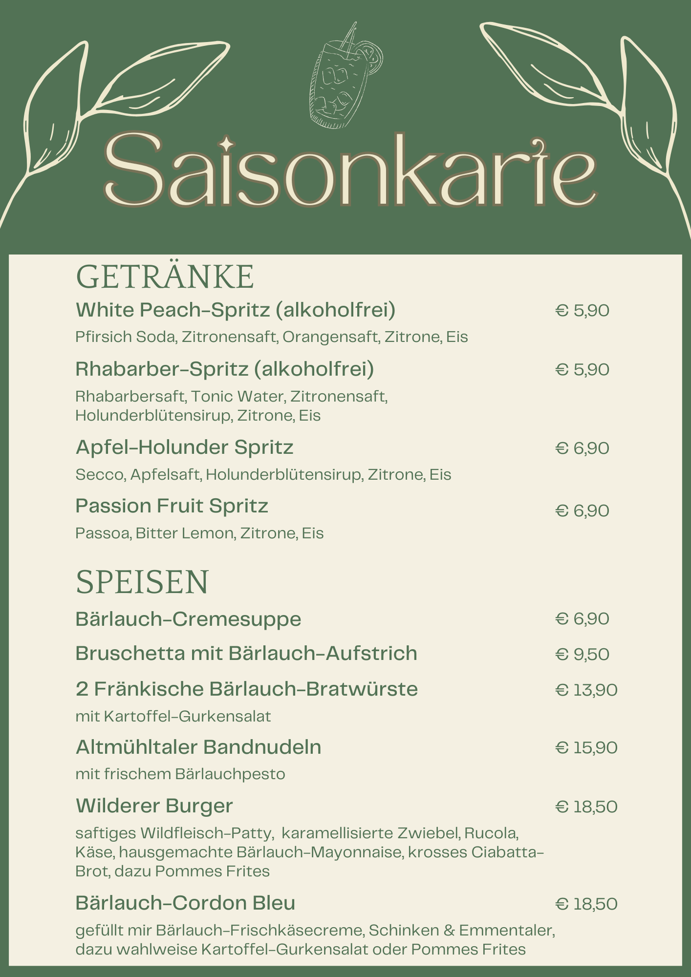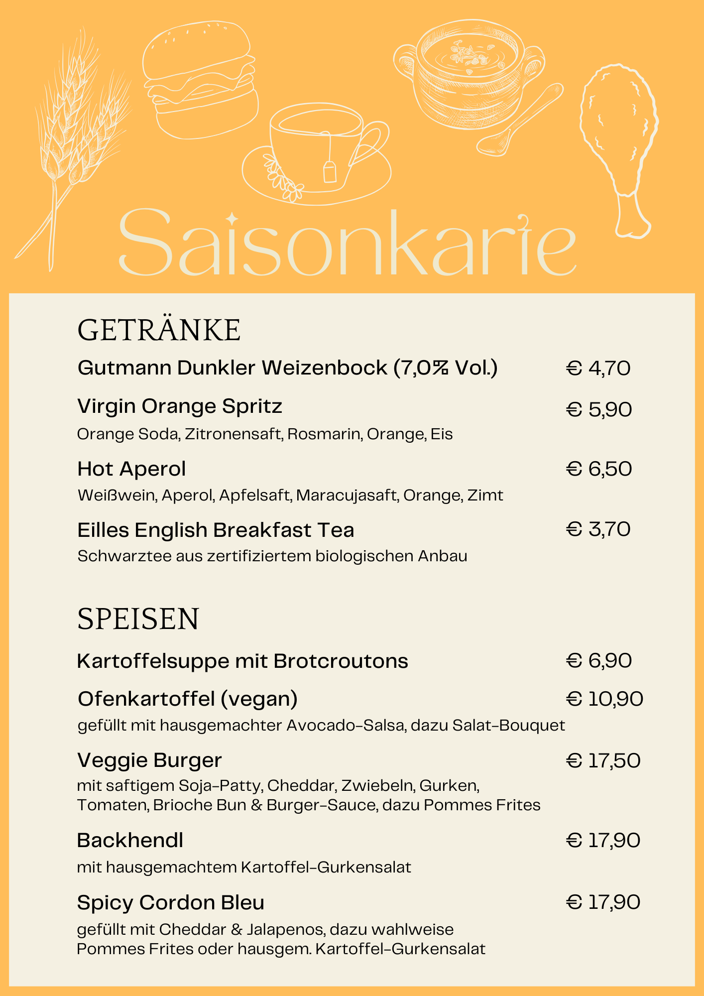 Saisonale Gerichte finden Sie auf unserer wechselnden Tageskarte!